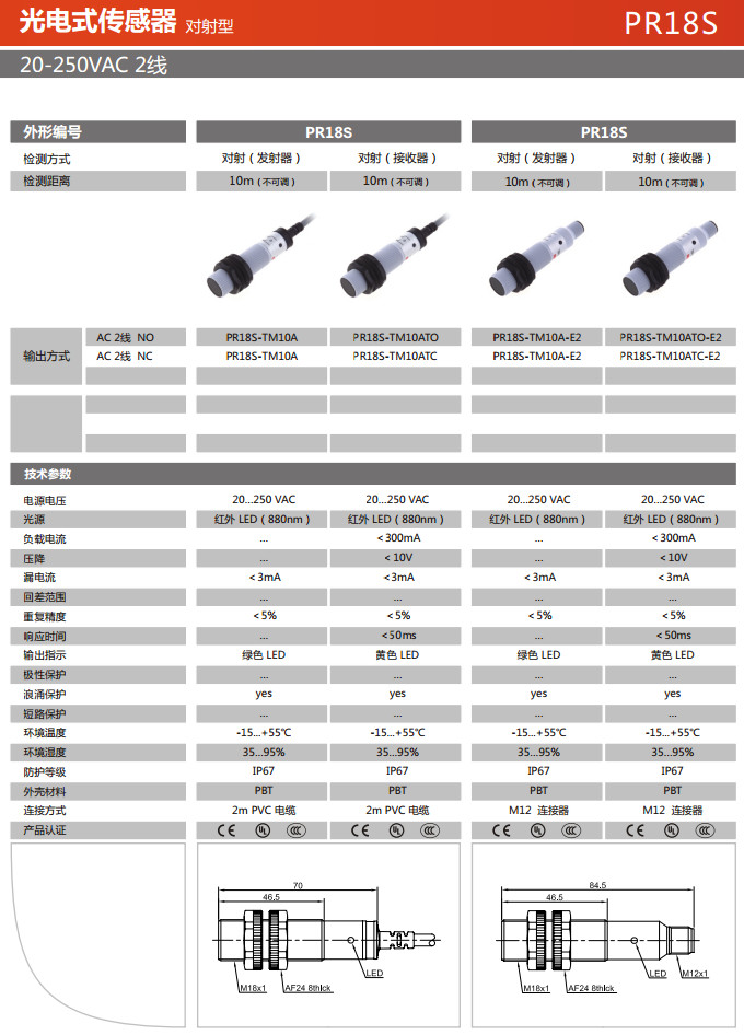 PR18S-TM10A,PR18S-TM10ATO,PR18S-TM10ATC,PR18S-TM10A-E2,PR18S-TM10ATO-E2,PR18S-TM10ATC-E2,光電式傳感器