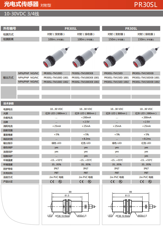 PR30SL-TM100D,PR30SL-TM100DEB,PR30SL-TM150D,PR30SL-TM150DEB,光電式傳感器