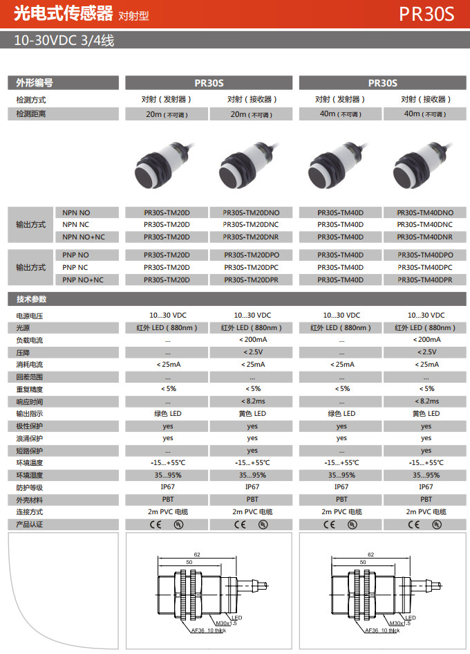 PR30S-TM20D,PR30S-TM20DNO,PR30S-TM40D,PR30S-TM20DNC,PR30S-TM20DNR,PR30S-TM20DPO,光電式傳感器 |