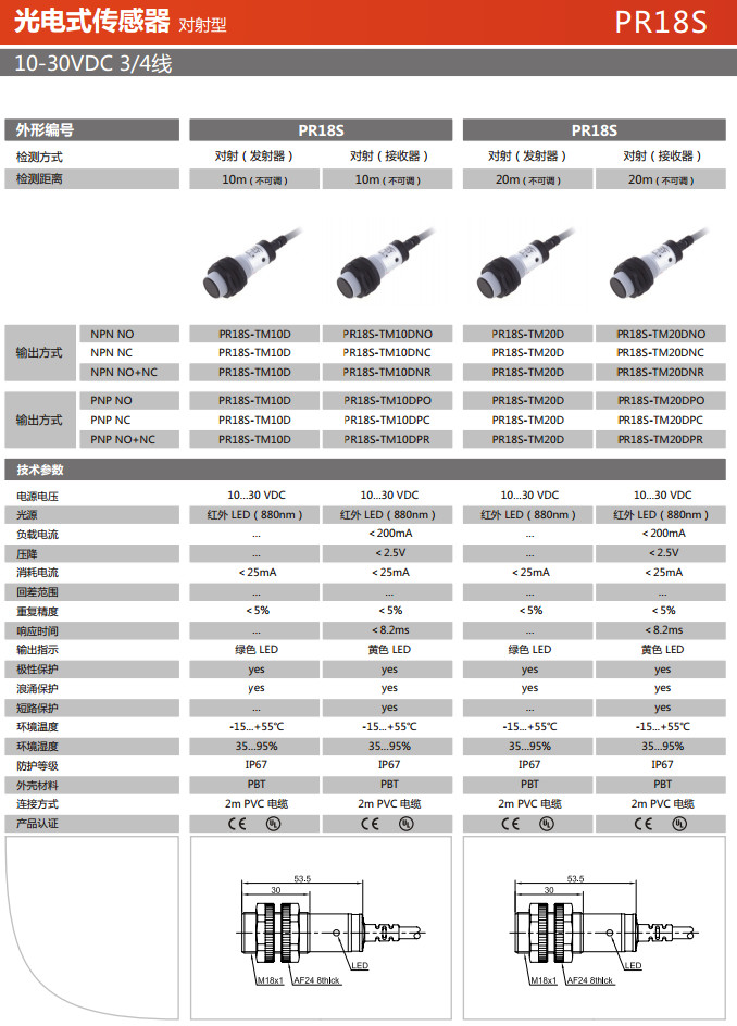 PR18S-TM10D,PR18S-TM20D,PR18S-TM10DNO,PR18S-TM10DNC,PR18S-TM10DNR,PR18S-TM10DPO,光電式傳感器 |