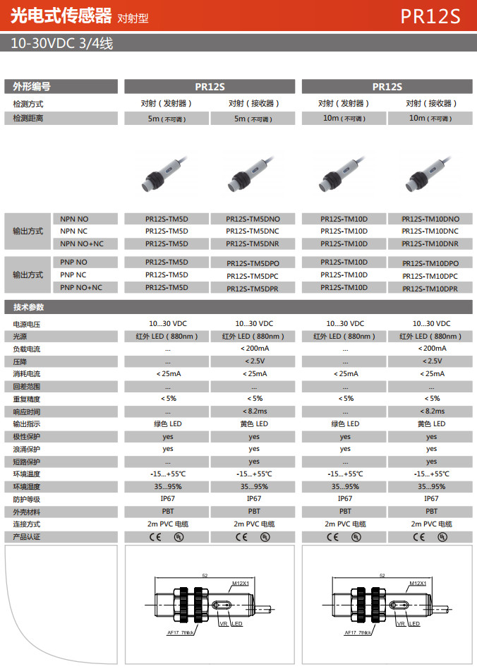 PR12S-TM5D,PR12S-TM5DNO,PR12S-TM5DNC,PR12S-TM5DNR,PR12S-TM10D,PR12S-TM10DNO,PR12S-TM10DNC,光電式傳感器 |