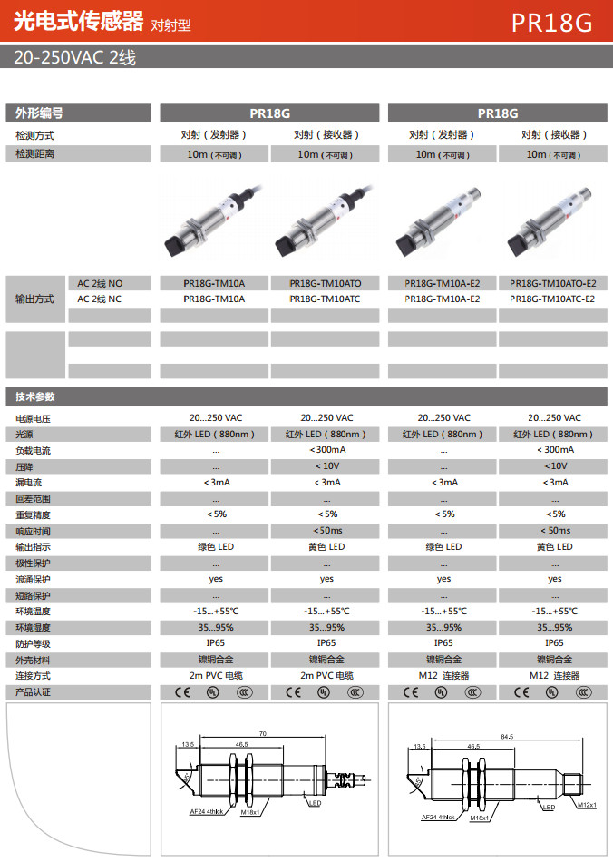 PR18G-TM10A,PR18G-TM10ATO,PR18G-TM10ATC,PR18G-TM10A-E2,PR18G-TM10ATO-E2,PR18G-TM10ATC-E2,光電式傳感器 |