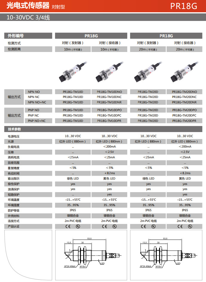 PR18G-TM10D,PR18G-TM10DNO,PR18G-TM10DNC,PR18G-TM10DNR,PR18G-TM10DPO,PR18G-TM10DPC,光電式傳感器