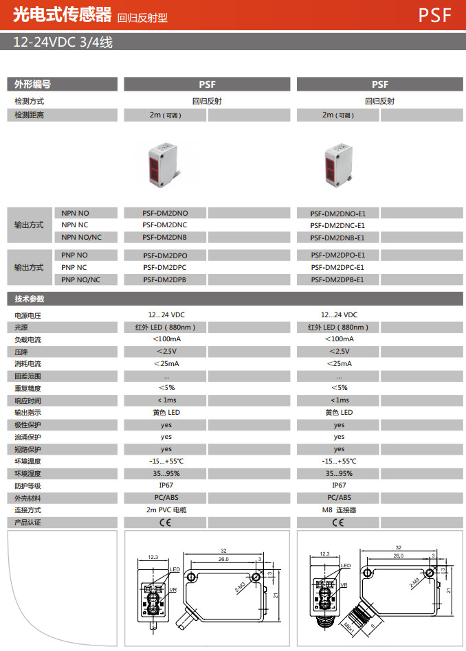 PSF-DM2DNO,PSF-DM2DNC,PSF-DM2DNB,PSF-DM2DPO,PSF-DM2DPC,PSF-DM2DPB,PSF-DM2DNO-E1,光電式傳感器