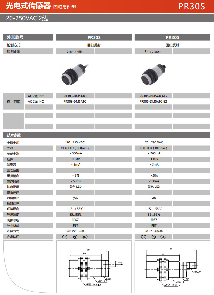 PR30S-DM5ATO,PR30S-DM5ATC,PR30S-DM5ATO-E2,PR30S-DM5ATC-E2,光電式傳感器