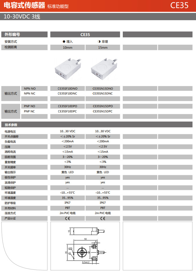 CE35SF10DNO,CE35SF10DNC,CE35SF10DPO,CE35SF10DPC,CE35SN15DNO,CE35SN15DNC,CE35SN15DPO,CE35SN15DPC,電容式傳感器