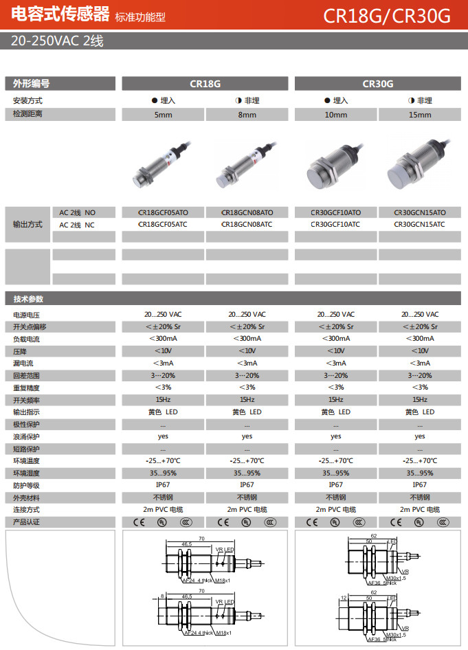CR18GCF05ATO,CR18GCF05ATC,CR18GCN08ATO,CR18GCN08ATC,CR30GCF10ATO,CR30GCF10ATC,CR30GCN15ATO,CR30GCN15ATC,電容式傳感器