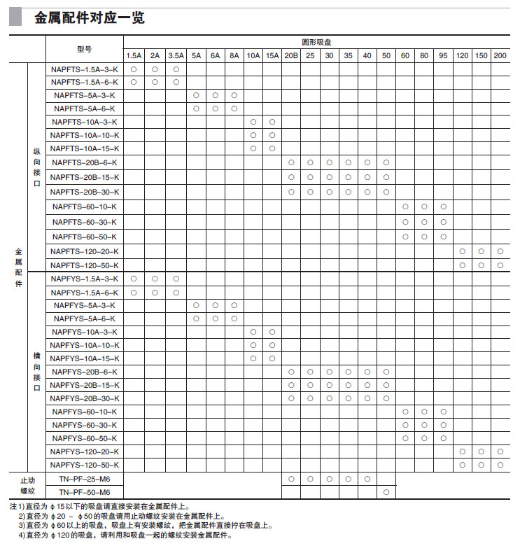 APFTS-1.5A,NAPFTS-2A,NAPFTS-25,NAPFYS-8A,NAPFYS-25,NAPFYS-2A,吸盤