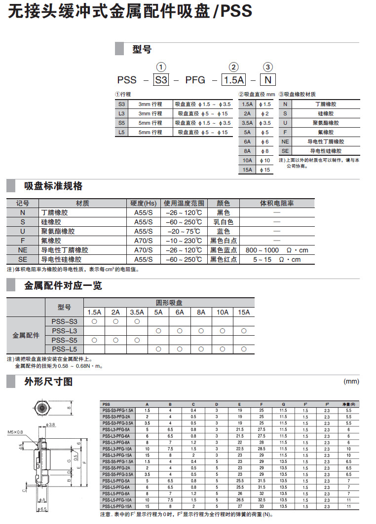 PSS-S3-PFG-1.5A,PSS-L3-PFG-15A,PSS-L5-PFG-5A,PSS-S5-PFG-1.5A,吸盤