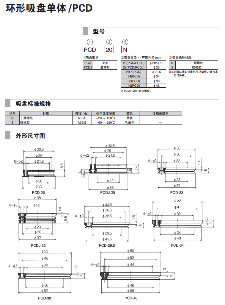 PCD-20,PCD-23,PCD-29.5,PCD-34,PCD-38,PCD-46,PCDJ-20,PCDJ-23,吸盤(pán)