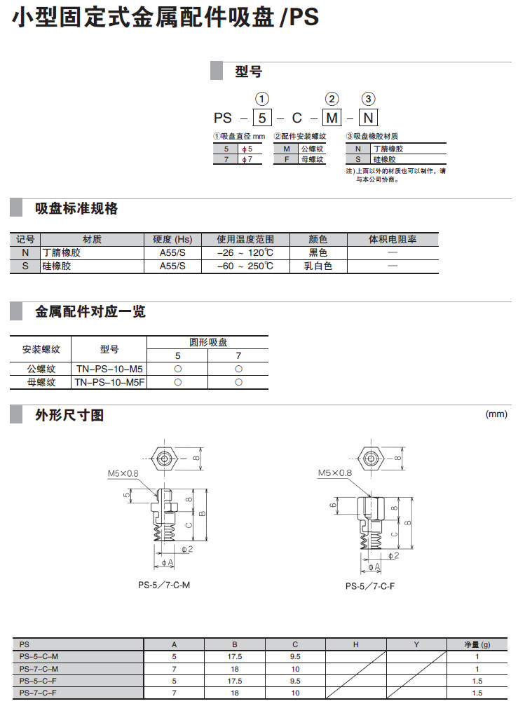 PS-5-C-M,PS-7-C-M,PS-5-C-F,PS-7-C-F,吸盤