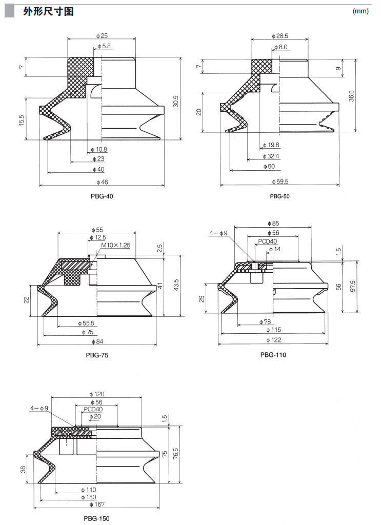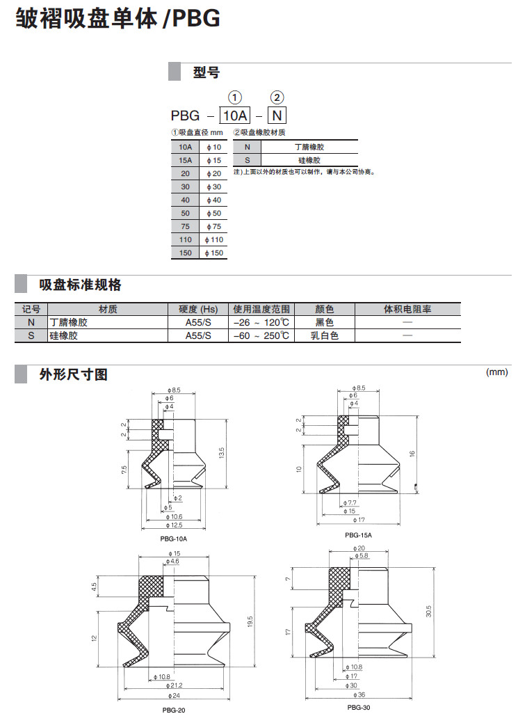 PBG-10A,PBG-15A,PBG-20,PBG-30,PBG-40,PBG-50,PBG-75,PBG-110,PBG-150,吸盤