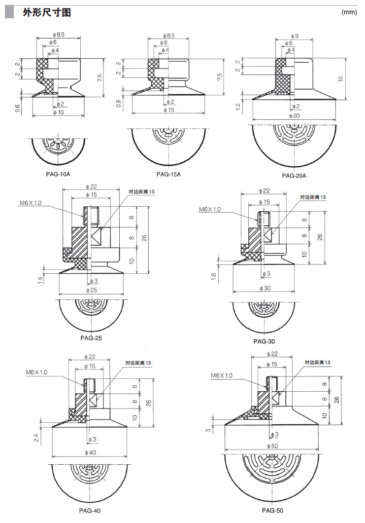 PAG-5B,PAG-10A,PAG-15B,PAG-20A,PAG-30B,PAG-40,PAG-50,PAG-10B,PAG-15A,PAG-20B,PAG-25,PAG-30,吸盤