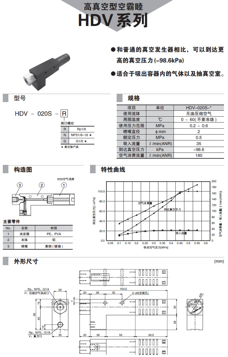 HDV-020S-R,HDV-020S-N,HDV-020S-G,真空發(fā)生器