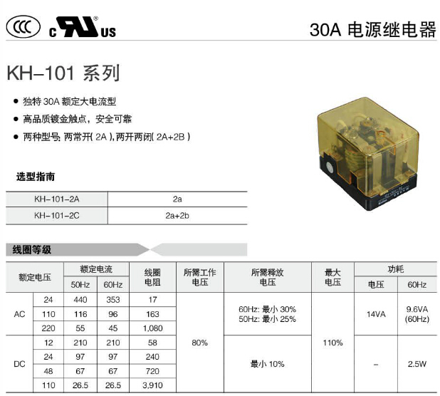 KH-101-2A,KH-101-2C,Koino 30A電源繼電器