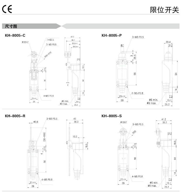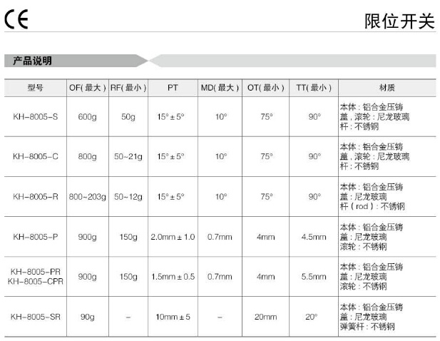 KH-8005-S,KH-8005-C,KH-8005-R,KH-8005-P,KH-8005-PR,KH-8005-CPR,KH-8005-SR,Koino限位開關(guān)