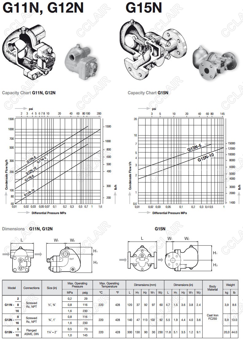 G11N-2,G11N-8,G11N-16,G12N-8,G12N-16,G15N-5,G15N-10,miyawaki浮球式蒸汽疏水閥