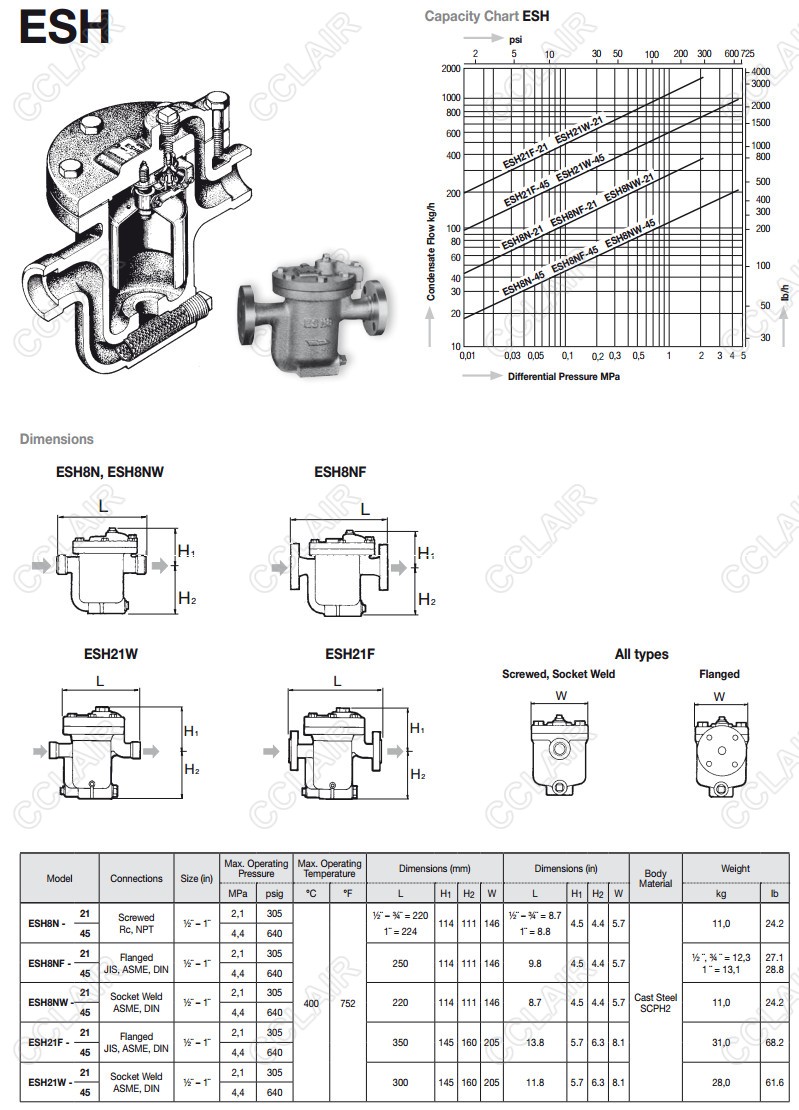 ESH8N-21,ESH8N-45,ESH8NF-21,ESH8NF-45,ESH8NW-21,ESH8NW-45,ESH21F-21,miyawaki倒吊桶式蒸汽疏水閥 |