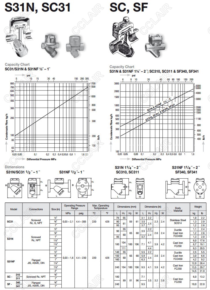 SC31,S31N,S31NF,SC-310,SC-311,SF-340,SF-341,miyawaki熱動力式蒸汽疏水閥