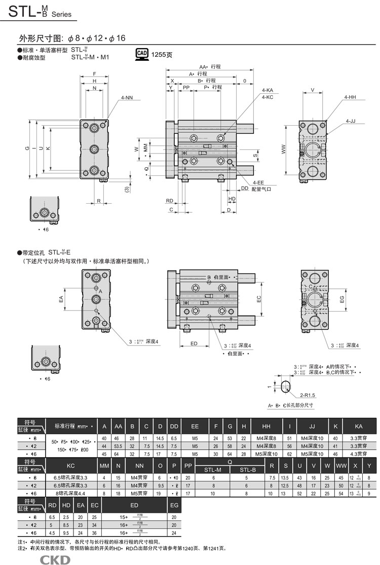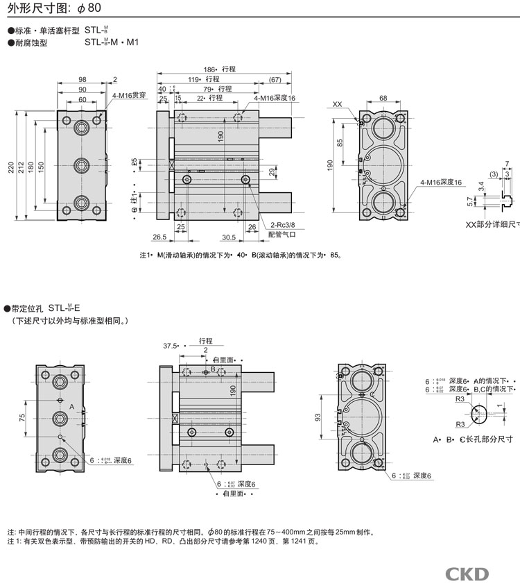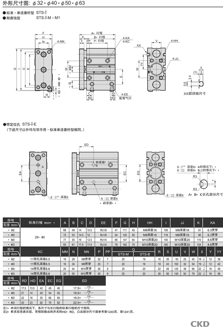 STS-M-32C-25,STS-B-32C-25,STL-B-32C-50,STL-M-32C-75,STL-M-32C-50,CKD帶導桿氣缸