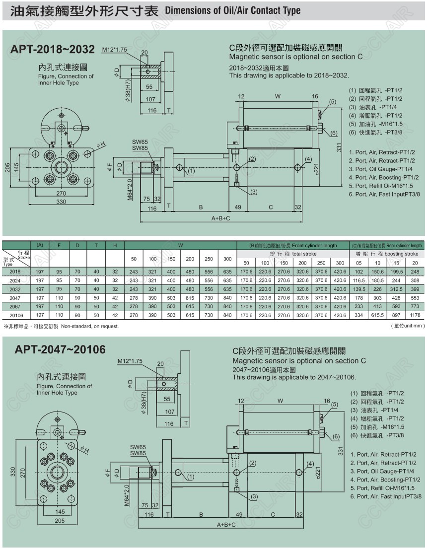 APT-C1613M50N10-1R,APT-C1619M50N10-1R,APT-C1630M50N10-1R,APT-C2018M50N10-1R,APT-C2024M50N10-1R,增壓缸