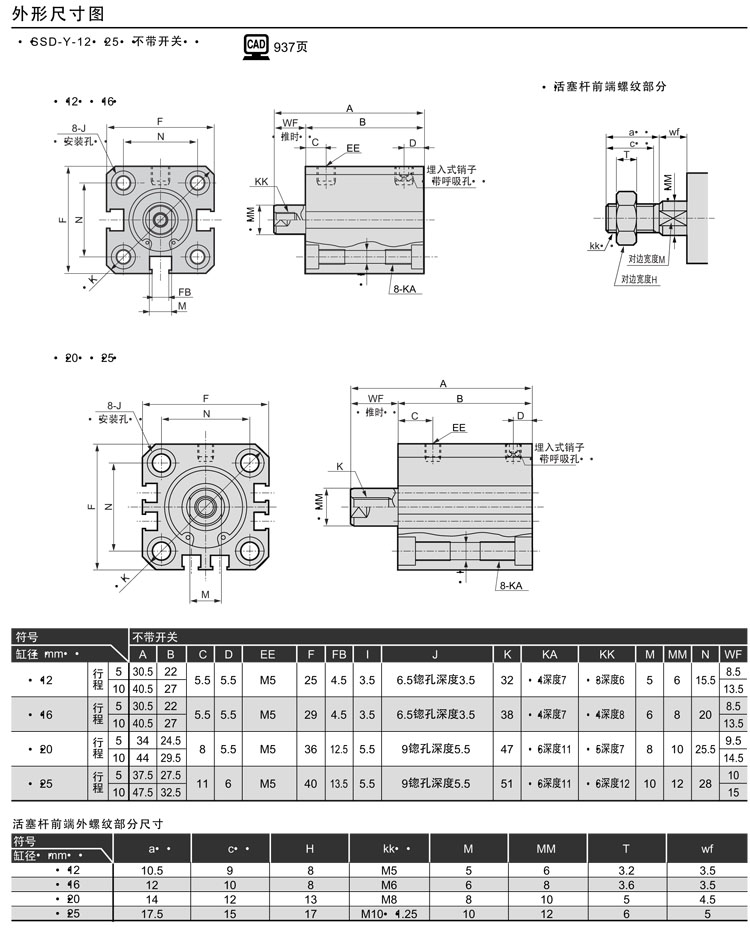 SSD-X-12-5,SSD-XL-12-5,SSD-XL1-12-5,SSD-Y-12-5,SSD-YL-12-5,SSD-YL1-12-5,CKD超緊湊型氣缸
