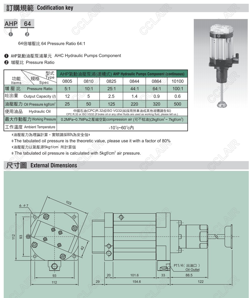 AHP-5,AHP-10,AHP-25,AHP-44,AHP-64,AHP-100,hinaka氣動油壓泵浦
