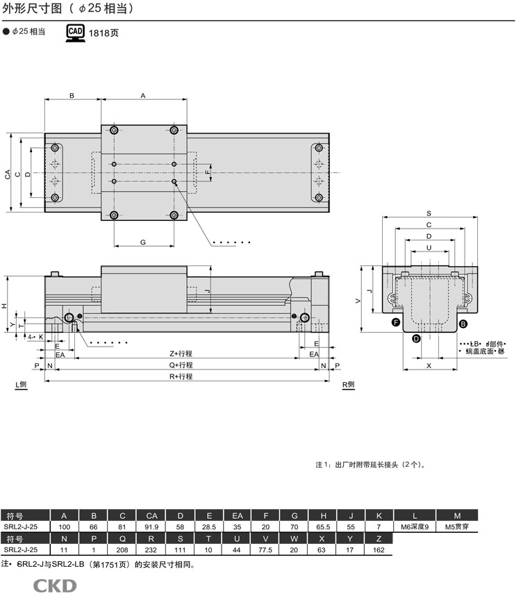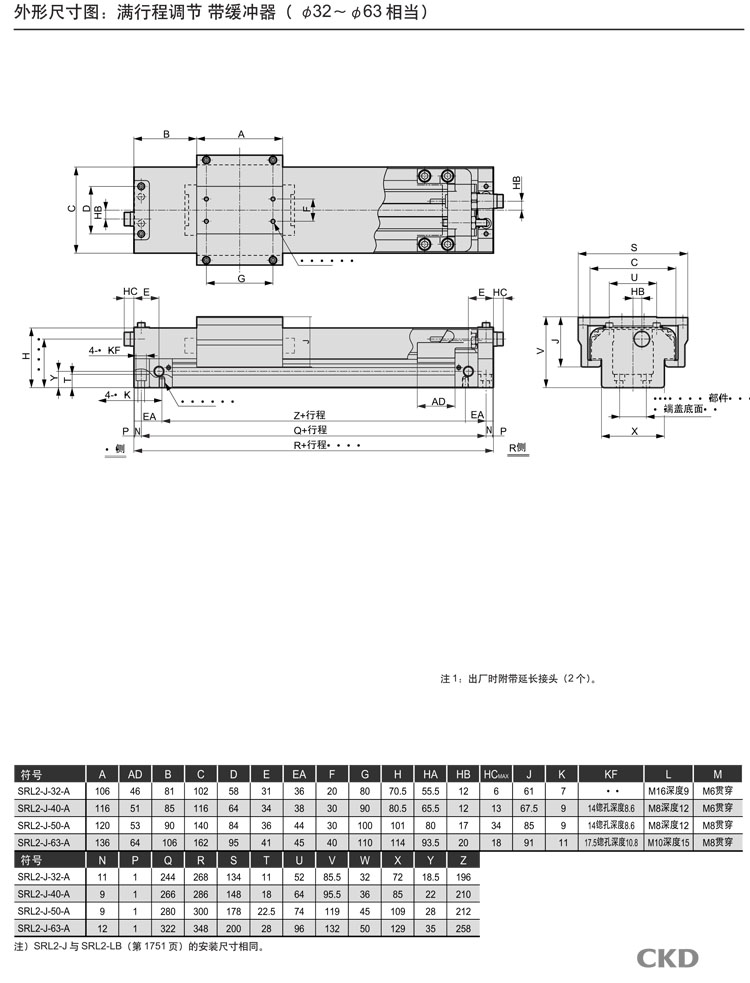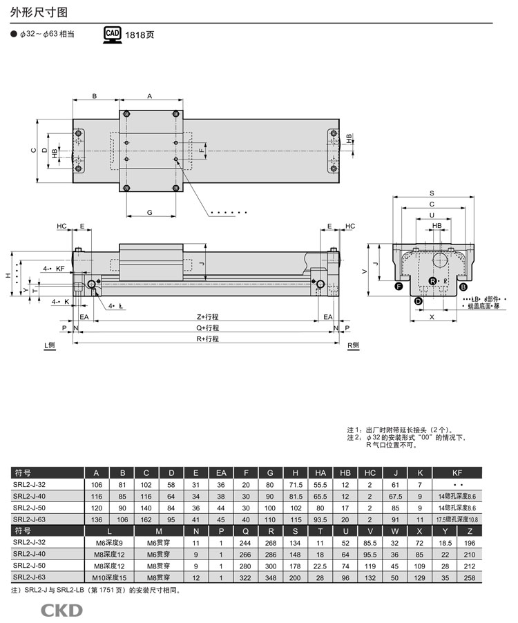 SRL2-J-00-25B,SRL2-J-00-32B,SRL2-J-LJ-40B,SRL2-J-LJ-50B,SRL2-J-LJ-63B,CKD無(wú)活塞桿型氣缸