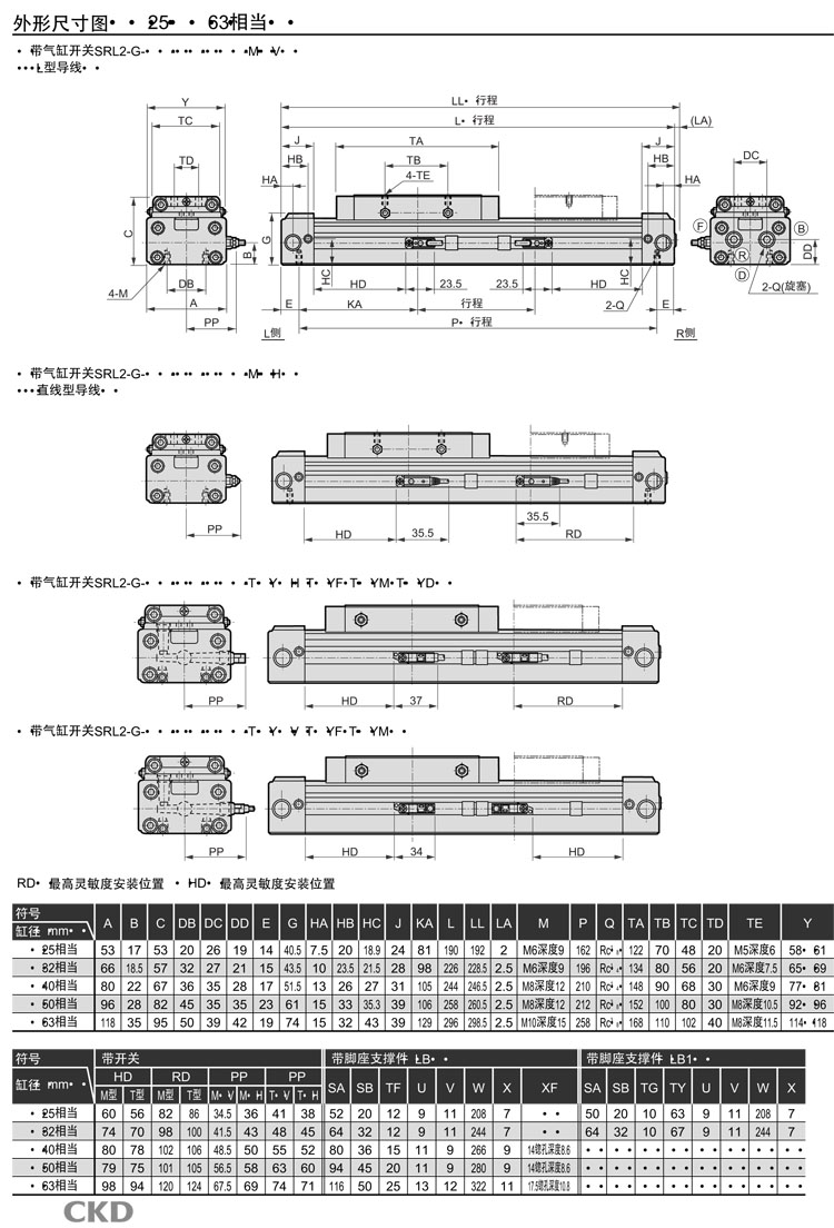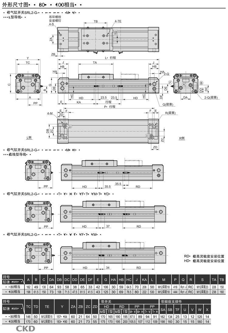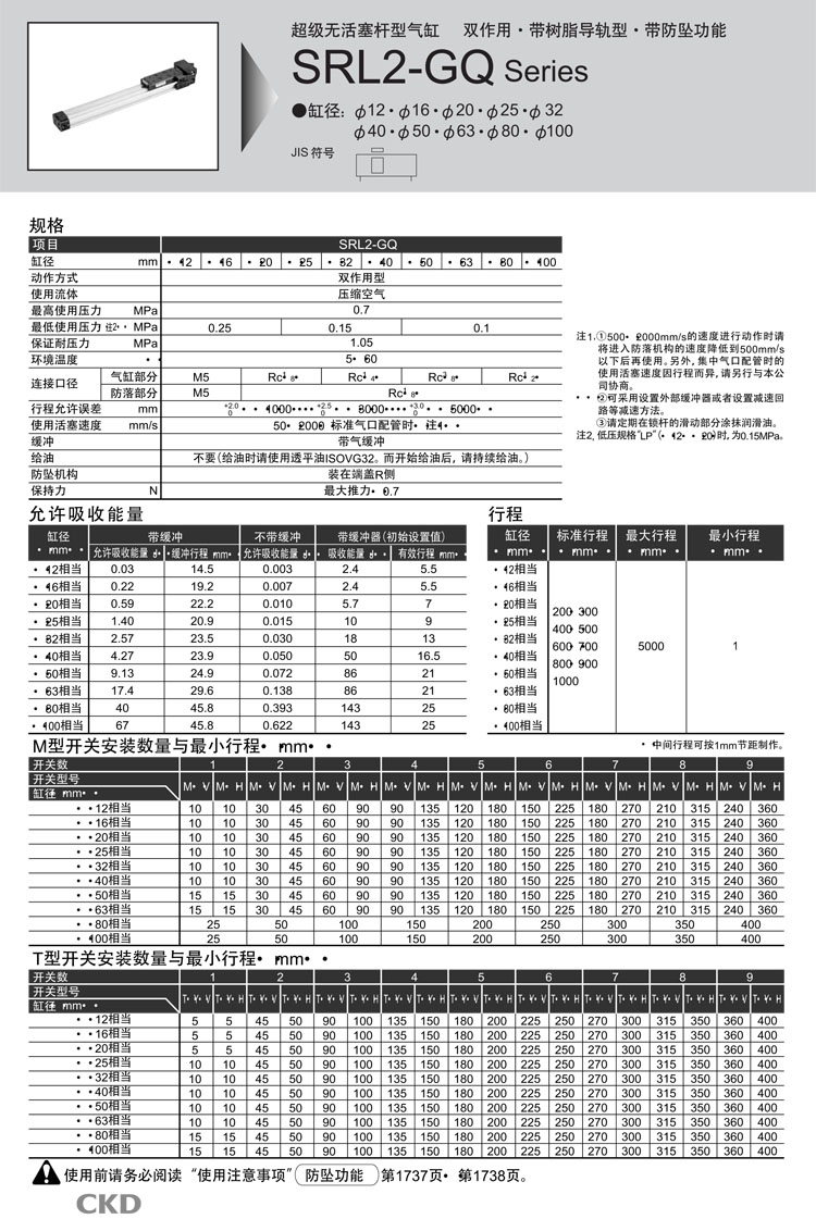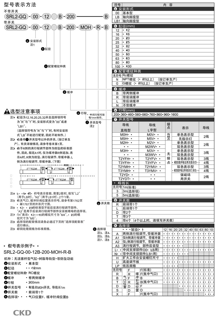 SRL2-GQ-00-12B-200,SRL2-GQ-LB-12B-200,SRL2-GQ-LB1-12B-200,SRL2-GQ-LB1-100B-700,CKD超級(jí)無(wú)活塞桿型氣缸