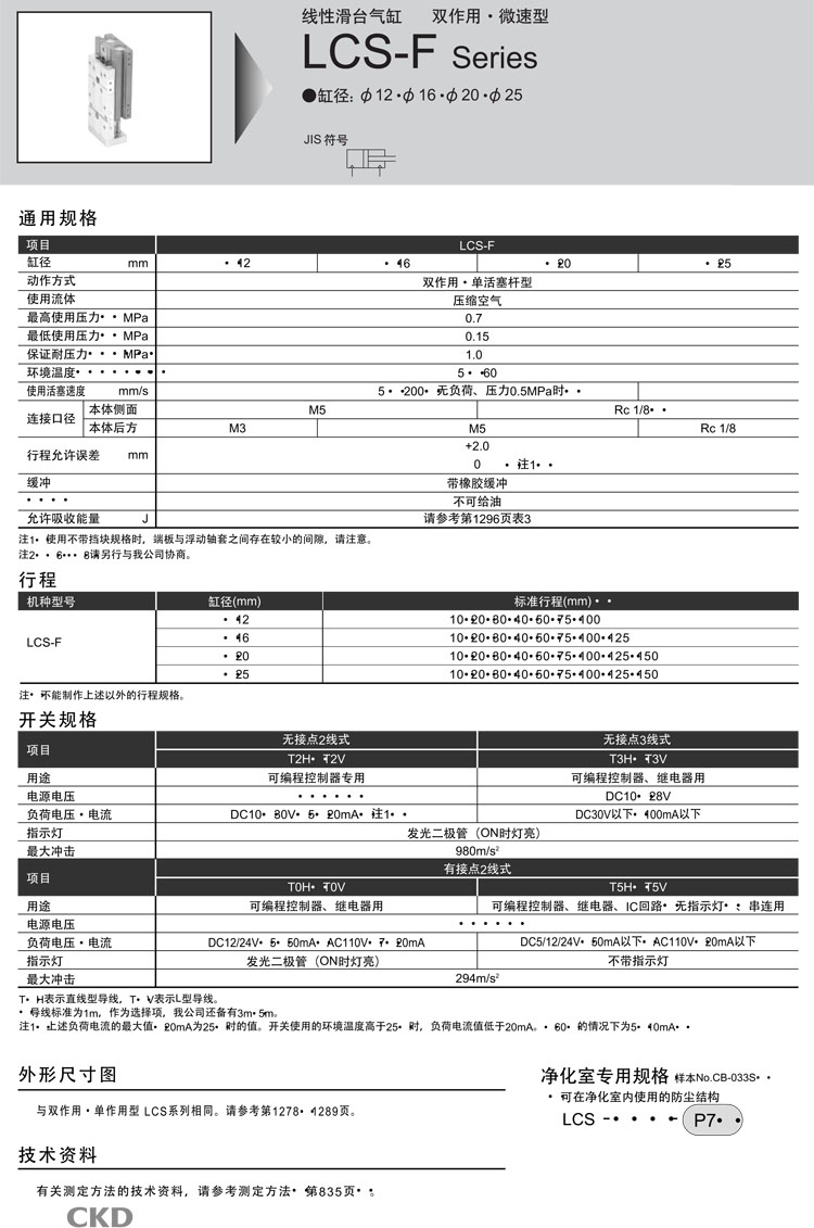 LCS-F-12-10,LCS-F-16-10,LCS-F-20-10,LCS-F-25-10,LCS-F-12-20,CKD線性滑臺氣缸