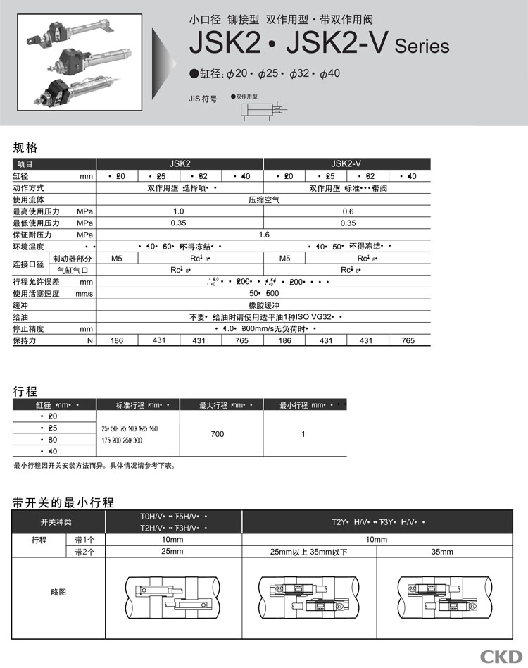 JSK2-V-TB-40-25,JSK2-V-TB-40-50,JSK2-V-TB-40-75,JSK2-V-TB-40-100,JSK2-V-TB-40-125,JSK2-V-TB-40-150,CKD制動氣缸