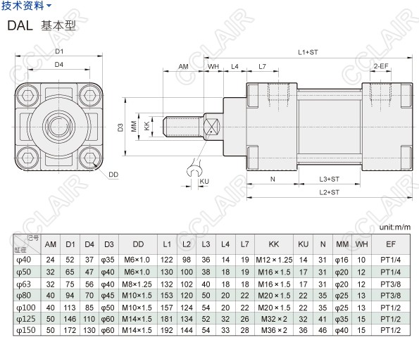 DALE-125M50,DALE-125M75,DALE-125M100,DALE-125M125,DALE-125M150,DALE-125M200氣缸