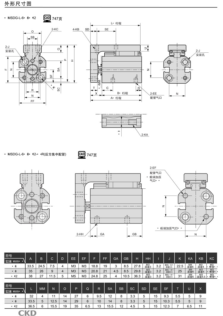MSDG-L-6,MSDG-L-10,MSDG-L-15,MSDG-L-20,MSDG-L-25,MSDG-L-30,CKD緊湊型氣缸