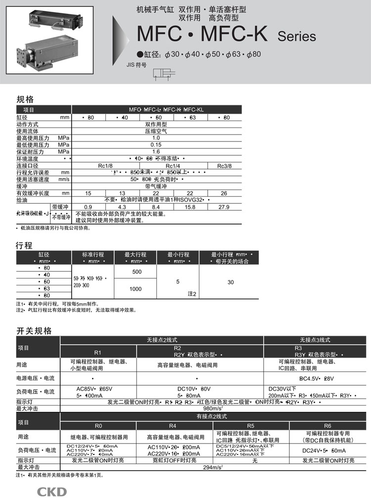 MFC-K-00-30B-75,MFC-K-00-30B-100,MFC-K-00-30B-150,MFC-K-00-30B-200,MFC-K-00-30B-300,CKD機(jī)械手氣缸