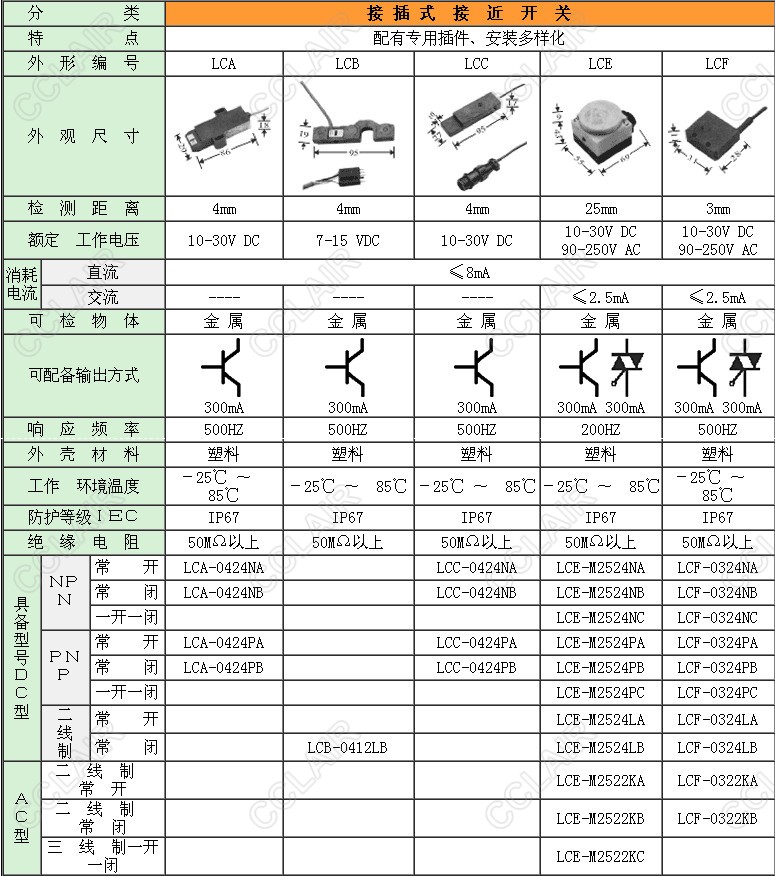 LCA-0424NA,LCC-0424NA,LCE-M2524NA,LCF-0324NA,LCA-0424NB,LCC-0424NB,LCE-M2524NB,接插式接近開關(guān) |