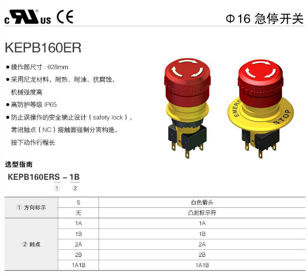 KEPB160ER,KEPB160ERS,Koino Φ16急停開關(guān)