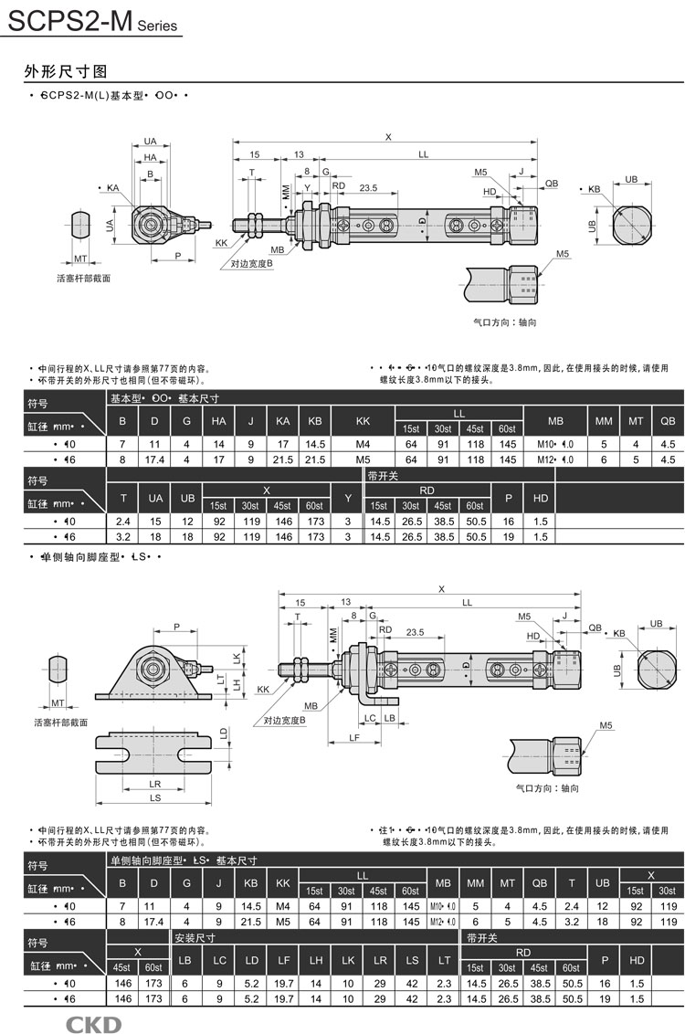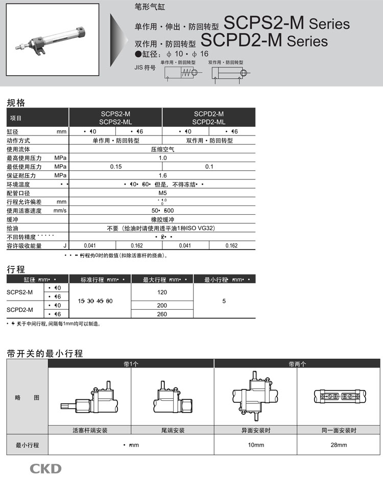 SCPS2-M-00,SCPS2-M-LS,SCPS2-M-FA,SCPS2-M-CB,SCPS2-ML-00,SCPS2-ML-LS,SCPS2-ML-FA,SCPS2-ML-CB,CKD筆型氣缸