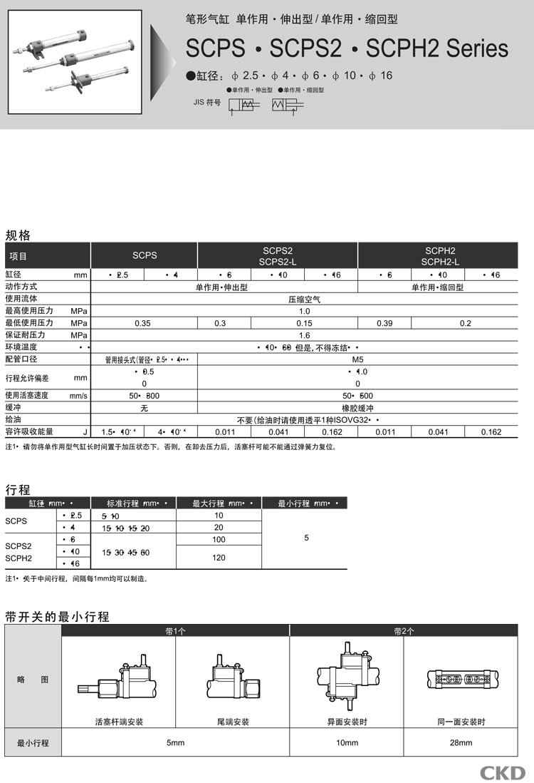 SCPS-00-2.5-5,SCPS-00-2.5-10,SCPS-00-4-5,SCPS-00-4-10,SCPS-00-4-15,SCPS-00-4-20,CKD筆型氣缸