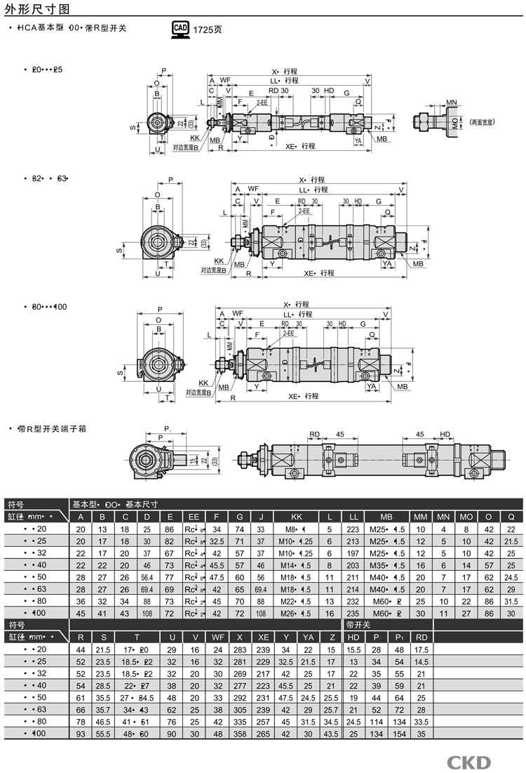HCA-FB-100B-700,HCA-FB-100B-750,HCA-FB-100B-800,HCA-FB-100B-850,HCA-FB-100B-900,HCA-FB-100B-950,CKD高速型氣缸
