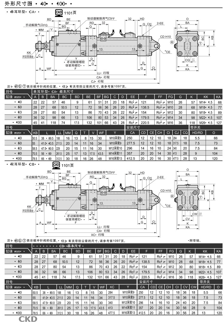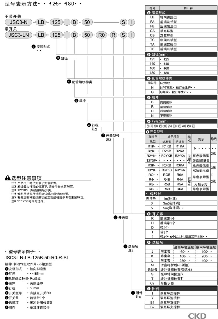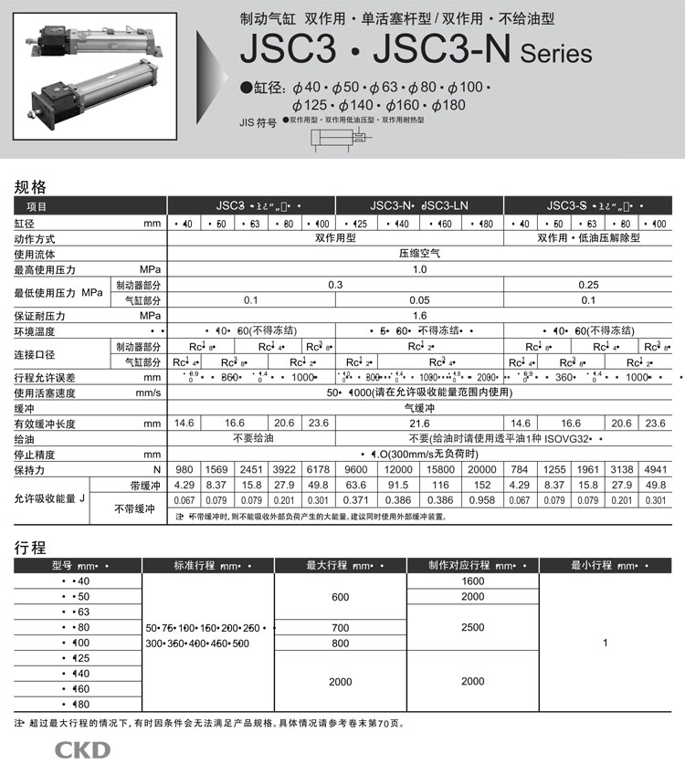 JSC3-00-40B-50,JSC3-S-00-40B-50,JSC3-SL2-00-40B-50,CKD制動(dòng)氣缸