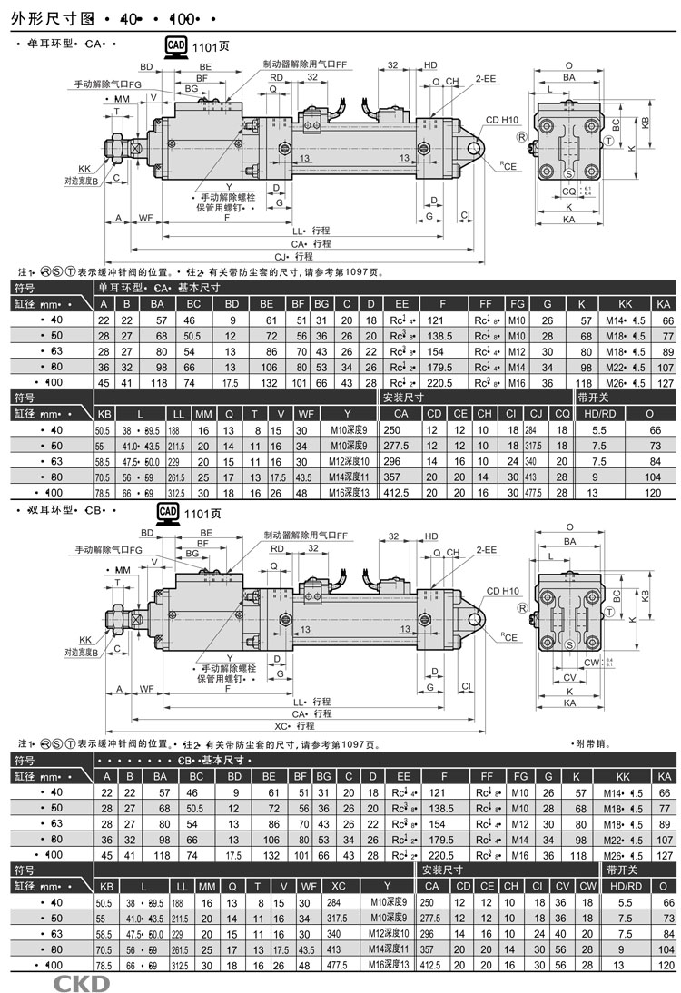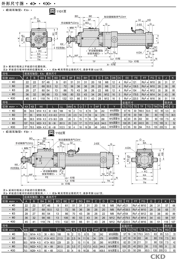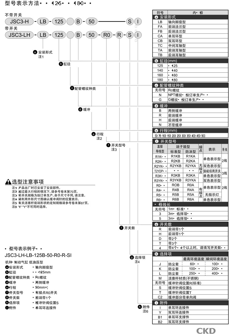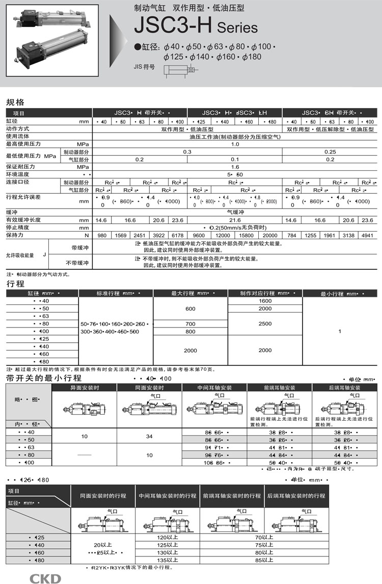 JSC3-H-00-40B,JSC3-SH-00-40B,JSC3-L2H-00-40B,JSC3-SL2H-00-40B,CKD制動(dòng)氣缸