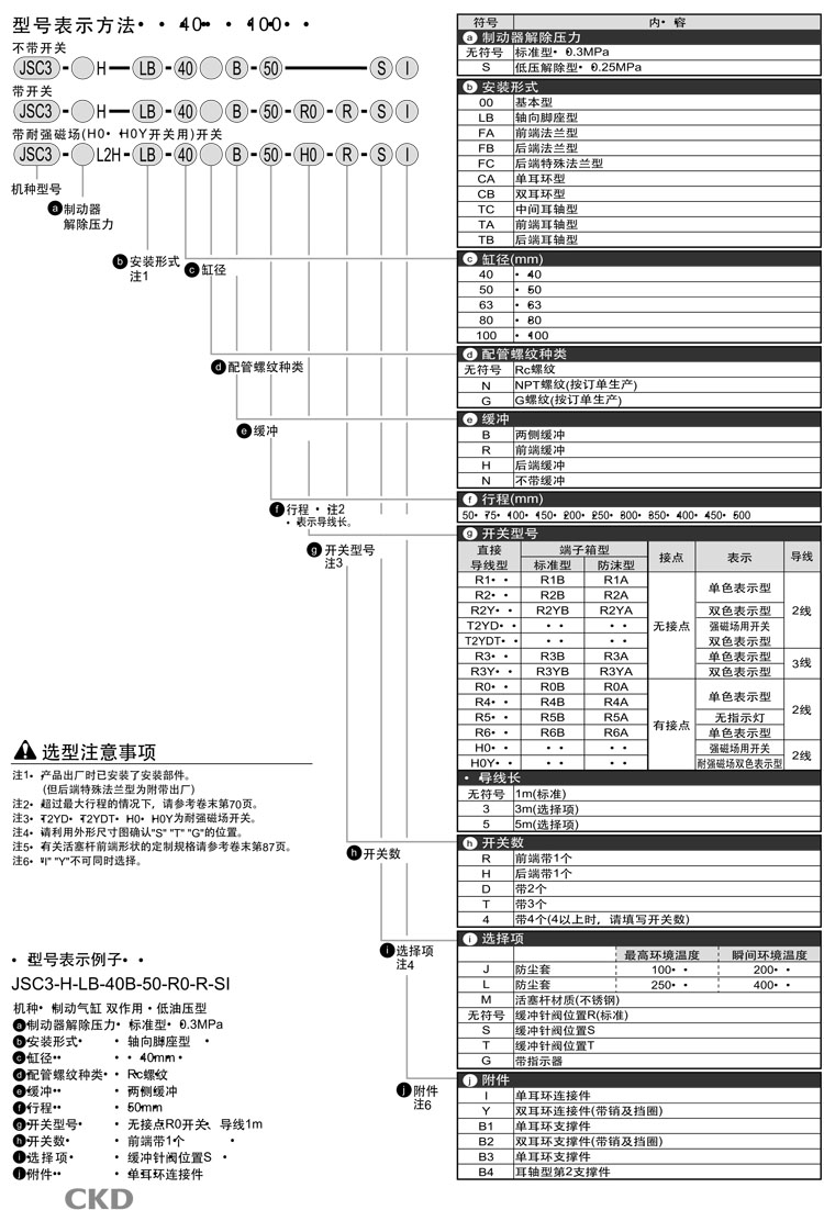 JSC3-H-00-40B,JSC3-SH-00-40B,JSC3-L2H-00-40B,JSC3-SL2H-00-40B,CKD制動(dòng)氣缸