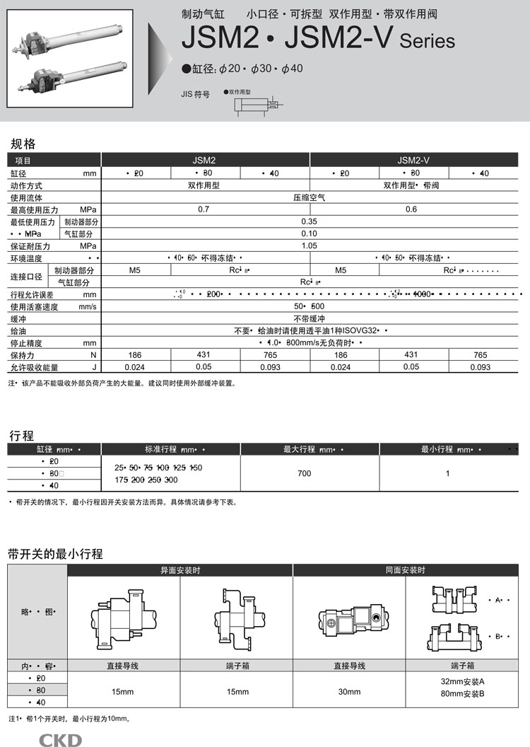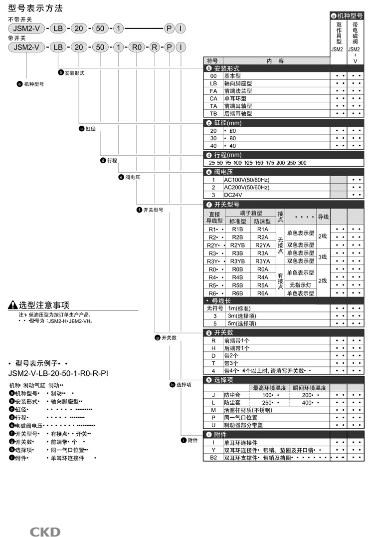 JSM2-V-00,JSM2-V-LB,JSM2-V-FA,JSM2-V-CA,JSM2-V-TA,JSM2-V-TB,JSM2-V-TB-40-150,CKD制動(dòng)氣缸