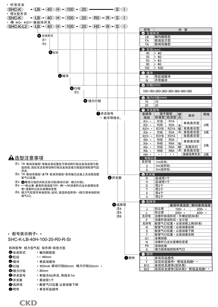 SHC-K-LB,SHC-K-FA,SHC-K-TA,SHC-K-L2-LB,SHC-K-L2-FA,SHC-K-L2-TA,CKD倍力型緊氣缸