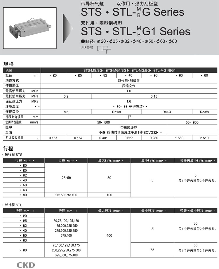 STS-MG,STS-BG,STS-MG1,STS-BG1,STL-MG,STL-BG,STL-MG1,STL-BG1,STS-MG-32-50,CKD帶導(dǎo)桿氣缸