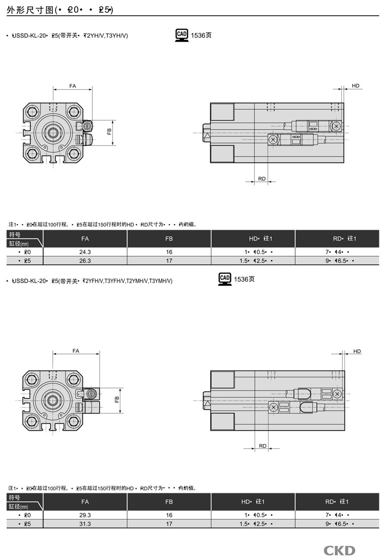USSD-20-5,USSD-L-20-5,USSD-K-20-5,USSD-KL-20-5,USSD-25-50,CKD防墜超緊湊型氣缸
