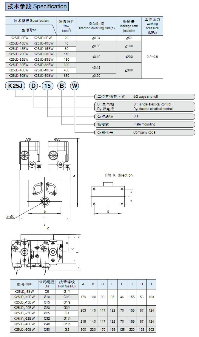 K25JD2-8BW,K25JD2-10BW,K25JD2-15BW,K25JD2-20BW,K25JD2-25BW,K25JD2-32BW,K25JD2-40BW,K25JD2-50BW,二位五通板接截止式換向閥