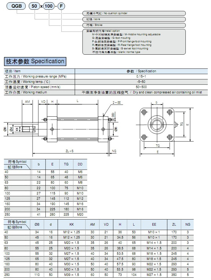 QGB40×100,QGB50×100,QGB63×100,QGB80×100,QGB100×100,QGB125×100,QGB160×100,QGB200×100,QGB250×100, |