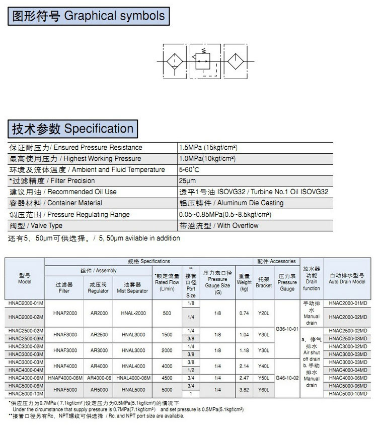 HNAC2000-01M,HNAC2500-02M,HNAC3000-02M,HNAC4000-04M,HNAC5000-06M,三聯(lián)件