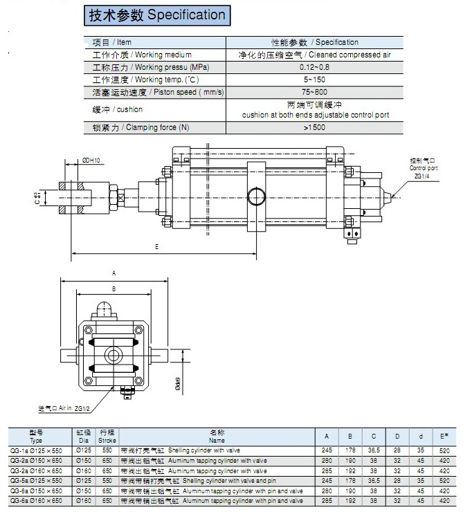 QG-1aΦ125×550,QG-2aΦ150×650,QG-5aΦ125×550,QG-6aΦ150×650,QG-6aΦ160×650,QG-2aΦ160×650,打殼氣缸 |